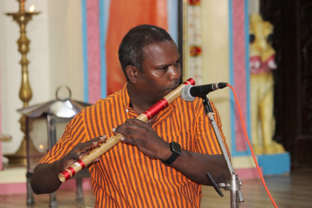 What came next was truly a feast for the senses and the soul — an enchanting Bharatanatyam recital by the talented students of Kalanayanam School of Dance, under the expert guidance of their Guru, Mrs. Durga Lakshmi. The performance was nothing short of magical — a seamless flow of graceful movements, expressive storytelling, and devotional fervour, all unfolding without a single pause. The dancers, adorned in vibrant traditional attire, brought ancient scriptures and divine episodes to life with each precise step and gesture. Their dedication, discipline, and devotion captivated the audience, leaving many in awe and some visibly moved. It was, in every sense, a mesmerizing and spiritually uplifting experience — a visual symphony that was as eye-soothing as it was heart-touching. The glorious evening drew to a close with Shanti Mantra chanting.