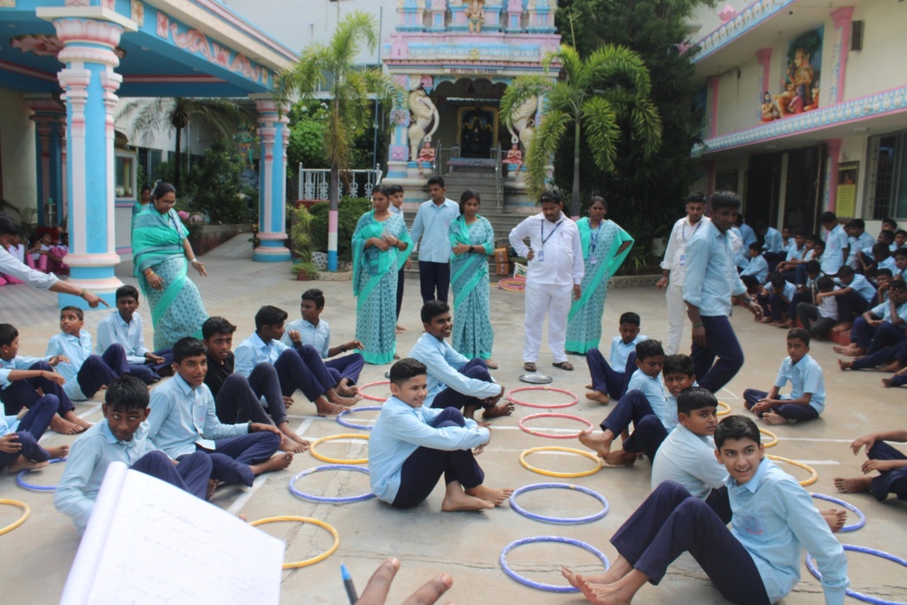 This was followed by one of the most anticipated events of the day – a high-spirited quiz competition on “Bharatiya Sanskrithi”. Conducted house-wise, the quiz was divided into five thrilling rounds, covering a range of topics such as Sathya Sai’s life and teachings, Indian history, general knowledge, and cultural wisdom. Each team competed with zeal and focus, reflecting both preparation and passion.