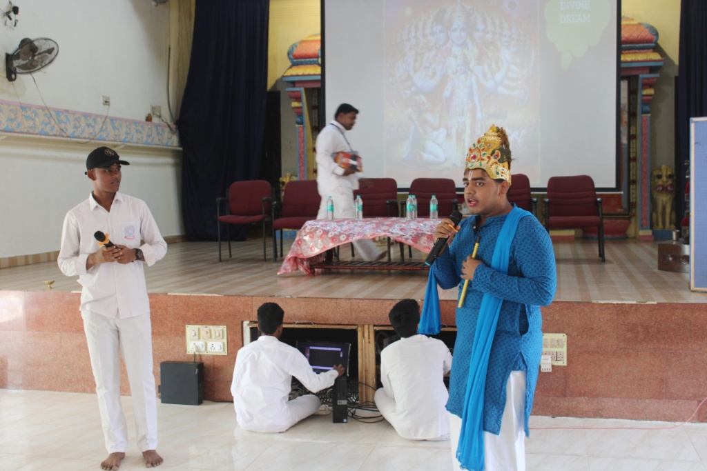 Following this elevating talk, the atmosphere transformed with a vibrant house-wise creative role-play competition. Each house had 10 minutes to present a skit embodying timeless values and moral lessons. Though concise, the performances were bursting with energy, creativity, and spiritual depth – leaving the audience inspired and applauding.