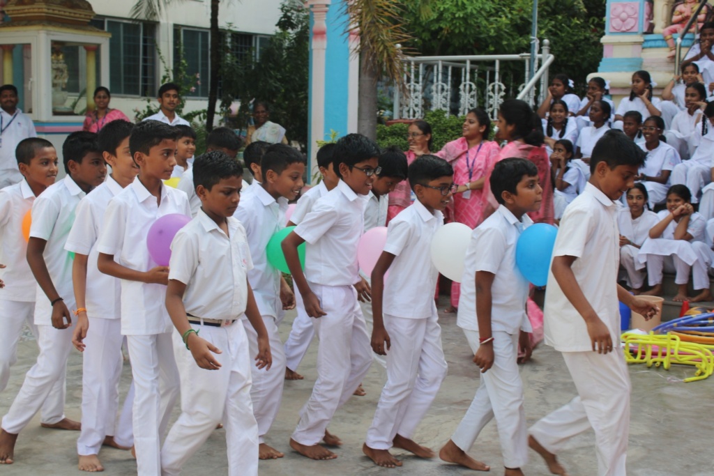 Dignitaries on the dais Sri C.Manikandan, Headmaster(secondary), Sri V.Thyagarajan, Spiritual Co-ordinator, Sri S.Loganathan, Correspondent, Sri Anand Nergunam S, Vice President, Zoho Corporation, Ms. N.Vedhanayagi, Principal-in-charge, Sri K.Poongothai, Headmistress(Primary)