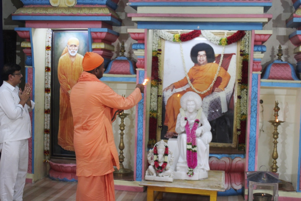 Chief Guest Swami Yagnapurushananda offering Mangala Arathi to Bhagawan