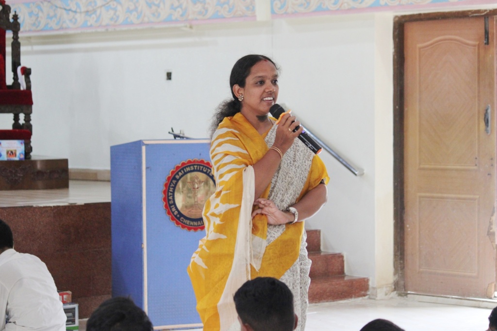 The session commenced with an inspirational and deeply moving address by Mrs. Sai Priya, Former District Educational Coordinator of Chennai Metro West District, SSSSO Tamil Nadu. Her opening question, “Are you all aware of Swami’s early life?”, instantly engaged the audience and set the tone for a heart-touching narrative.