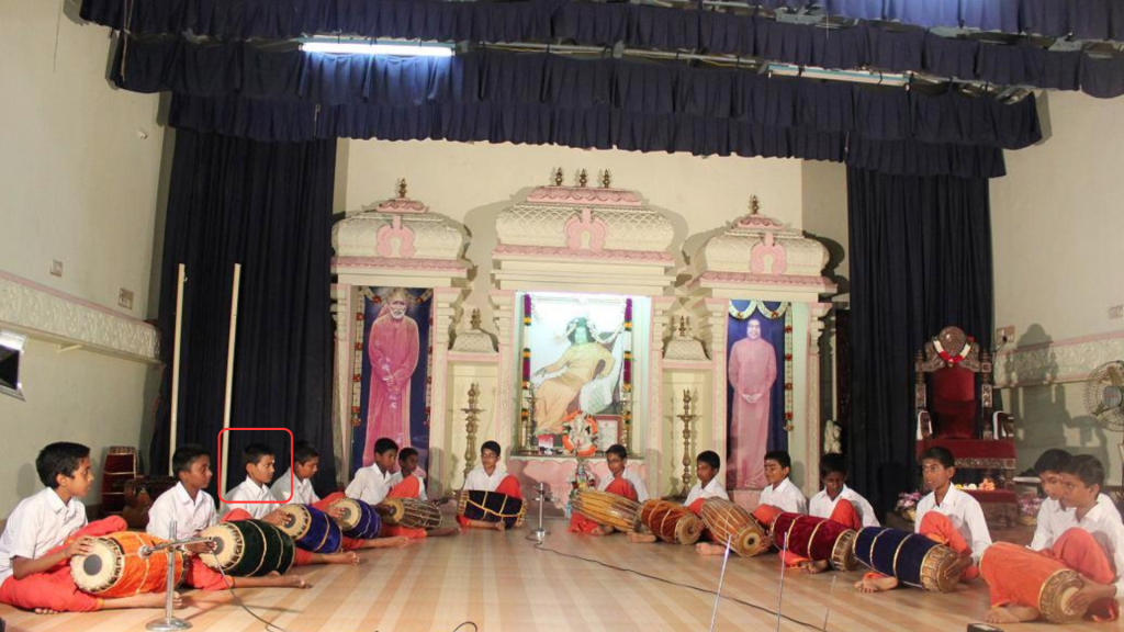 Harinkumar being a part of a Mridangam Presentation group at SSSIE