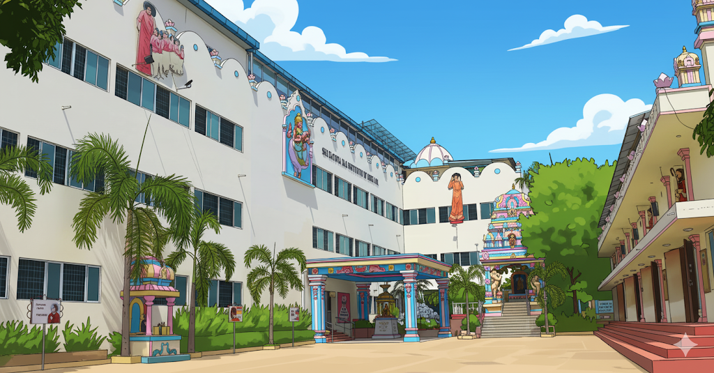 The Institute is housed at Nemilichery, a village located about three kilometres from the Chennai – Chromepet Railway station. The total area of the Institute is 1.3 acres. The Institute has a fully furnished three-storey building with spacious and well-lit classrooms. A beautiful temple for Sri Vidya Ganesh, a large prayer hall, a playground and good laboratory facilities constitute a serene, pleasant and potential learning atmosphere. The Institute offers education under the CBSE (Central Board of Secondary Education) pattern of education.